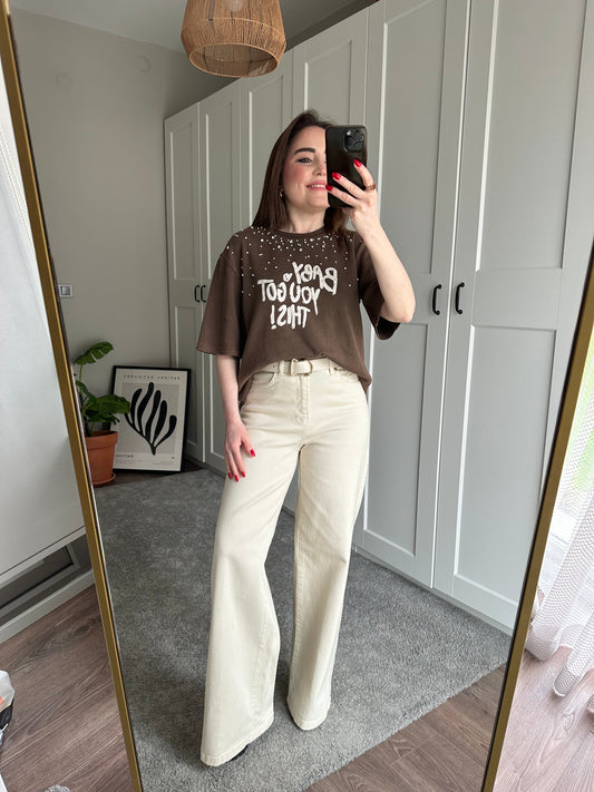 Taşlı incili taşlanmış tişört