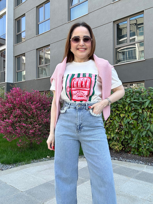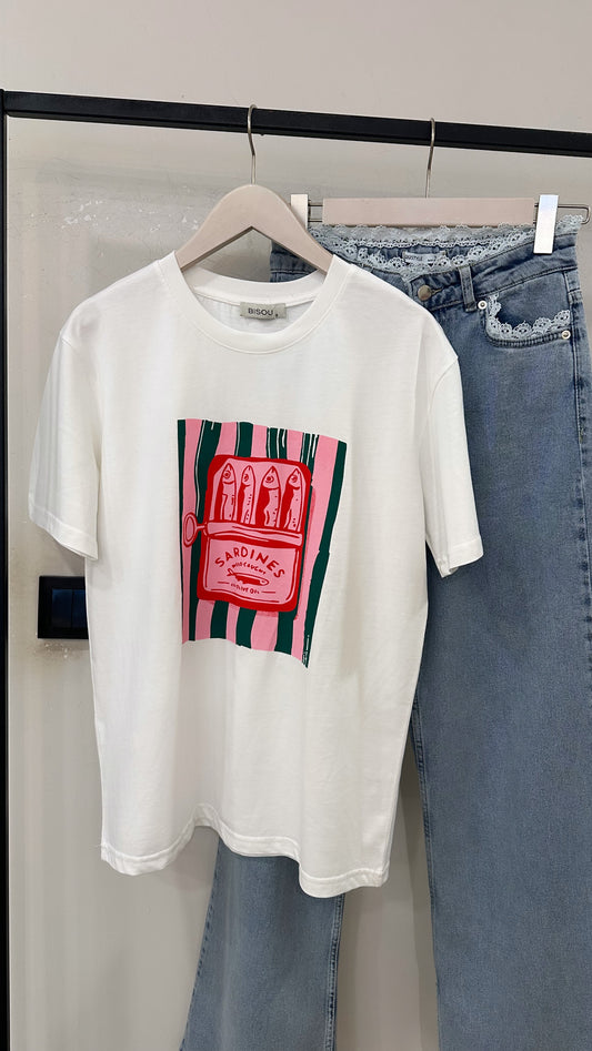 Sardines baskılı tişört