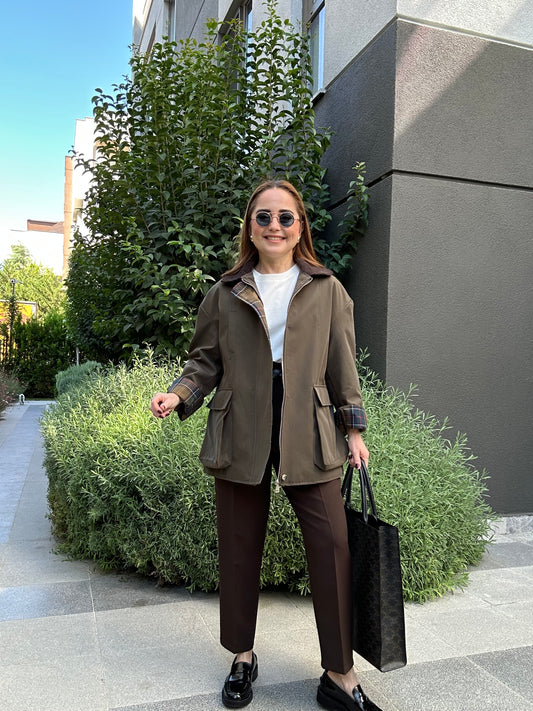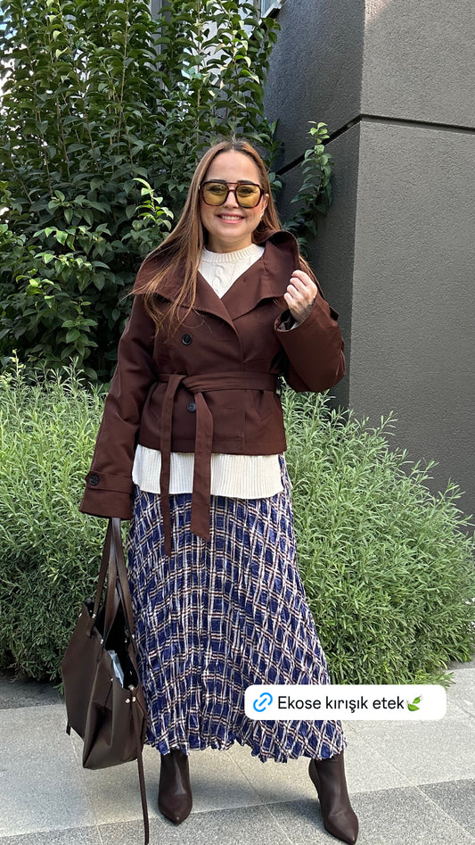 İndirimPremium ekose astarlı trençkot