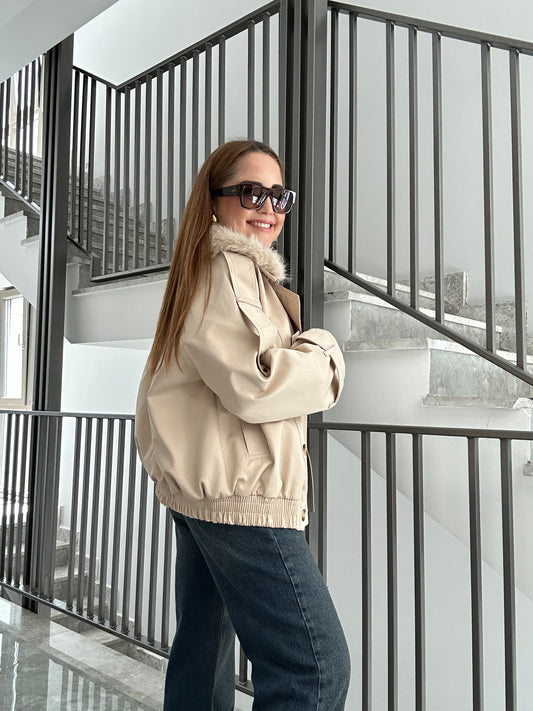 TükendiPremium deri bomber ceket