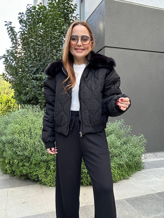 Leopar desen kapitone mont (Çıkabilir kürk )