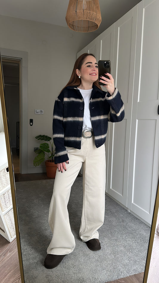 Leopar tüylü denim mont ( Çıkabilir kürk )