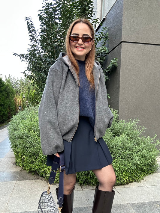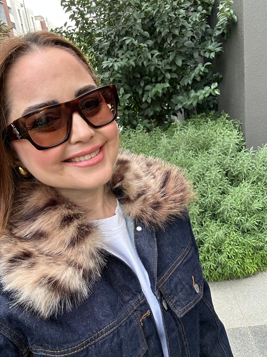 Leopar tüylü denim mont ( Çıkabilir kürk )