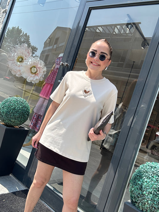 TükendiKalp nakışlı tişört