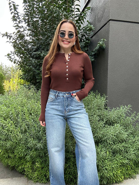İndirimSedef düğmeli triko