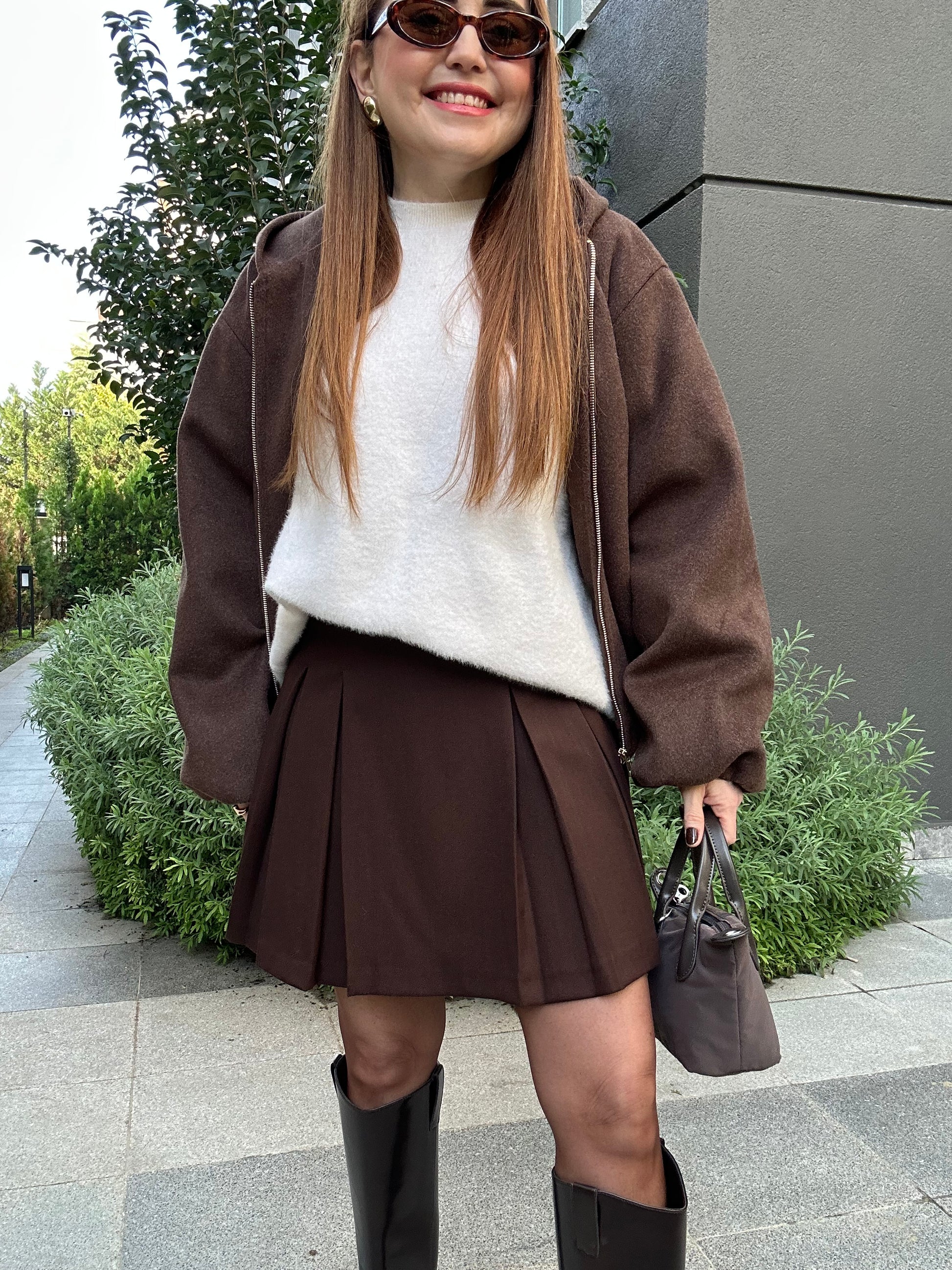 ✨ Kış stilinin en feminen ve en modern parçası: Pileli mini etek.