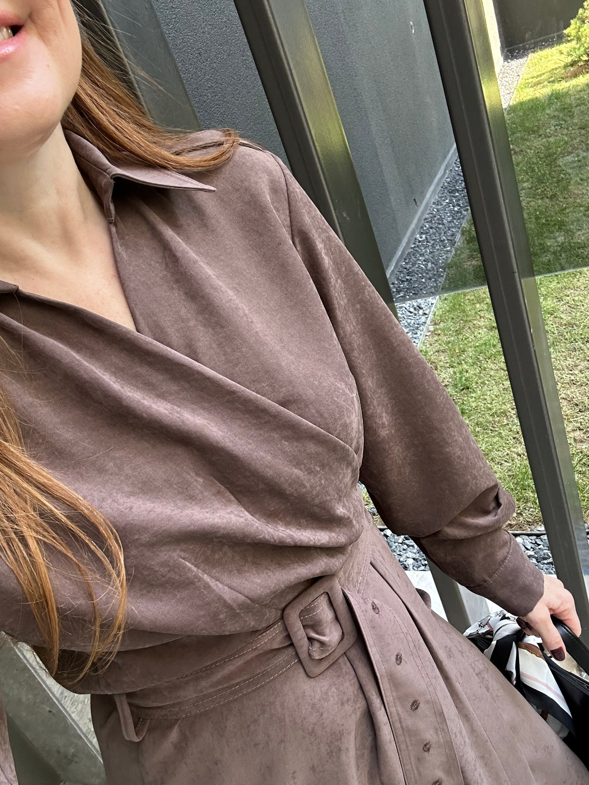 Güderi görünümlü kruvaze elbise