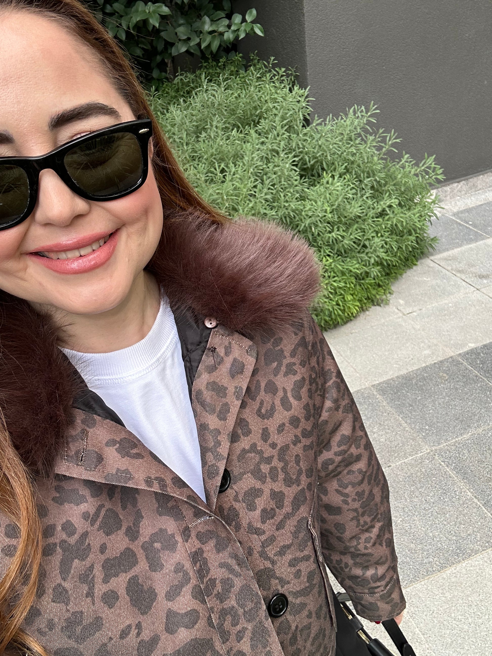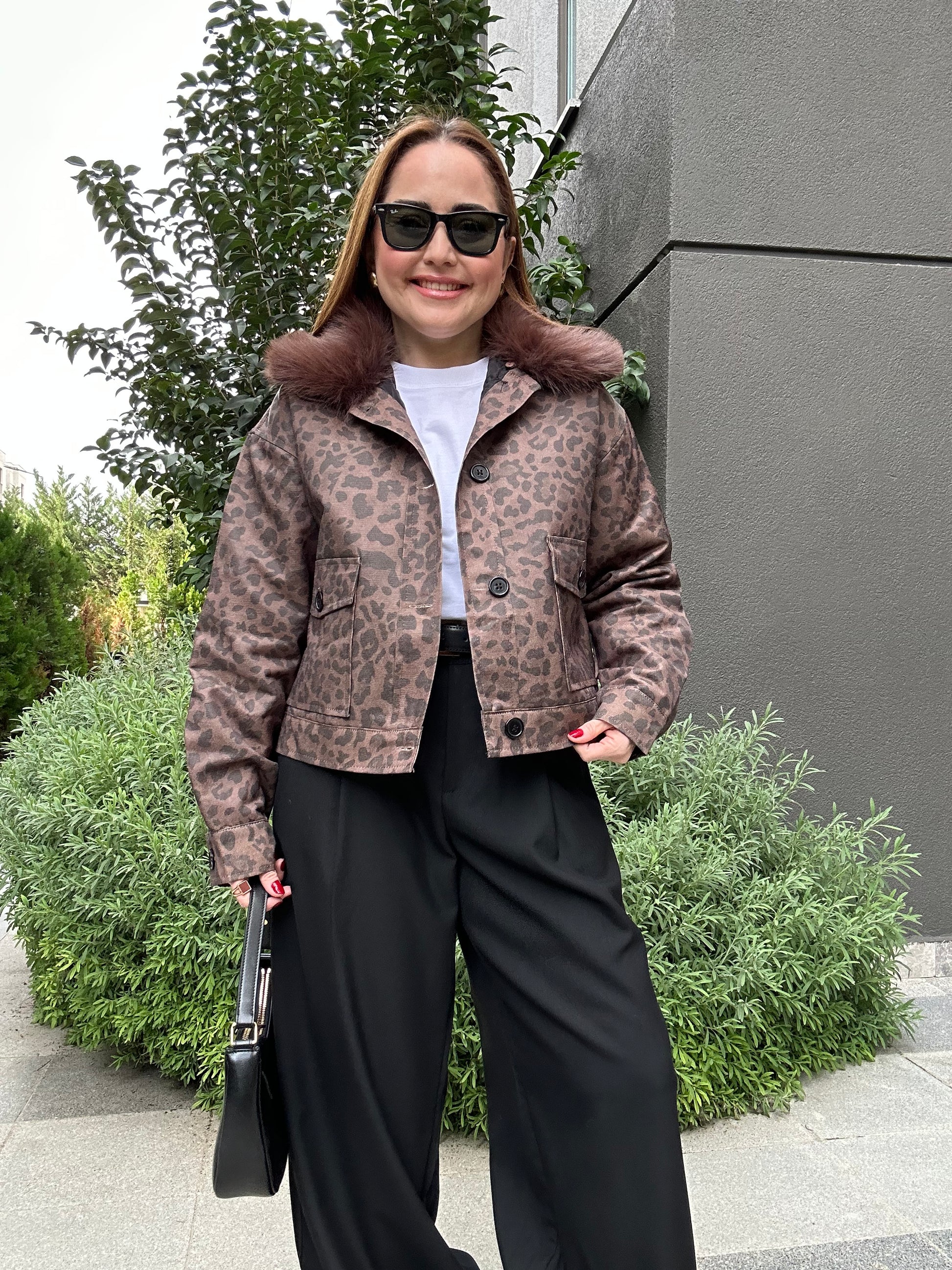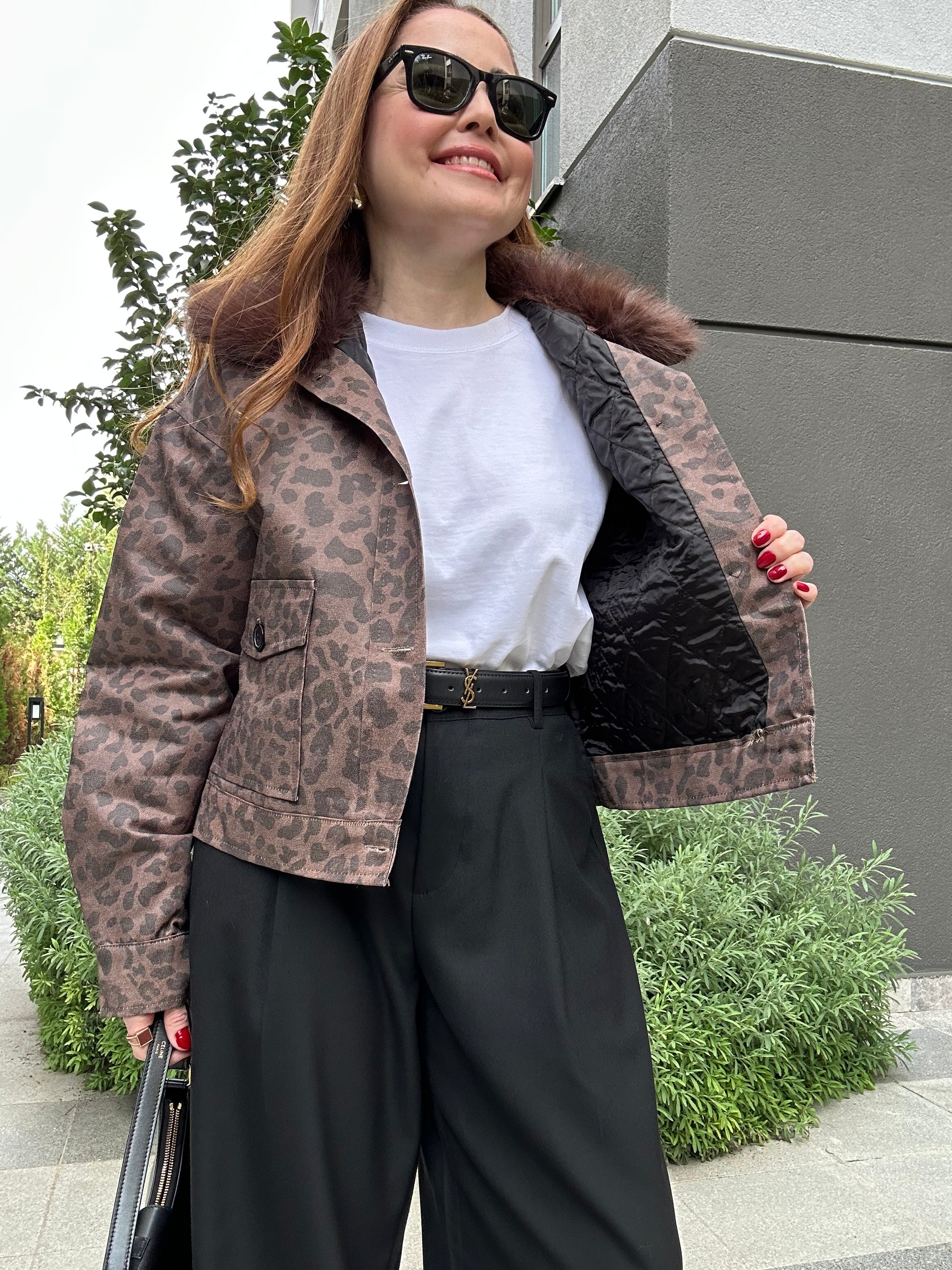 Leopar desen kapitone mont (Çıkabilir kürk )