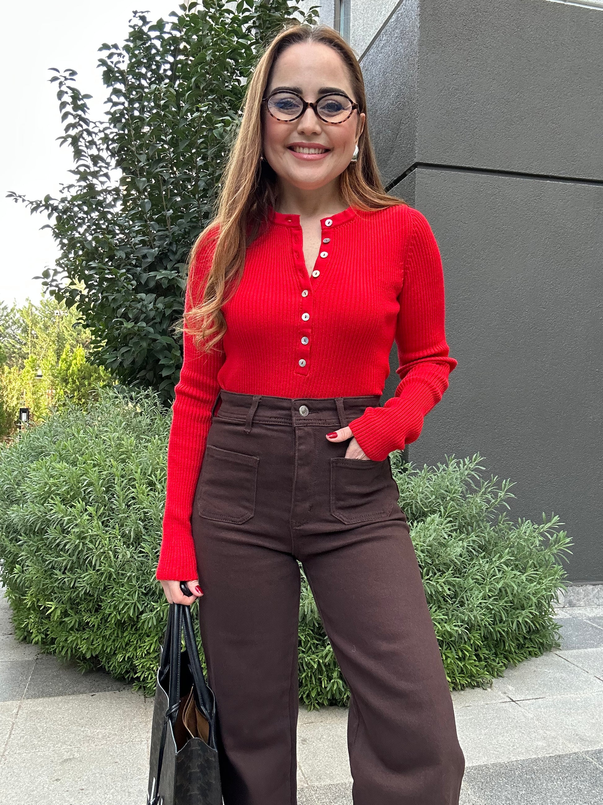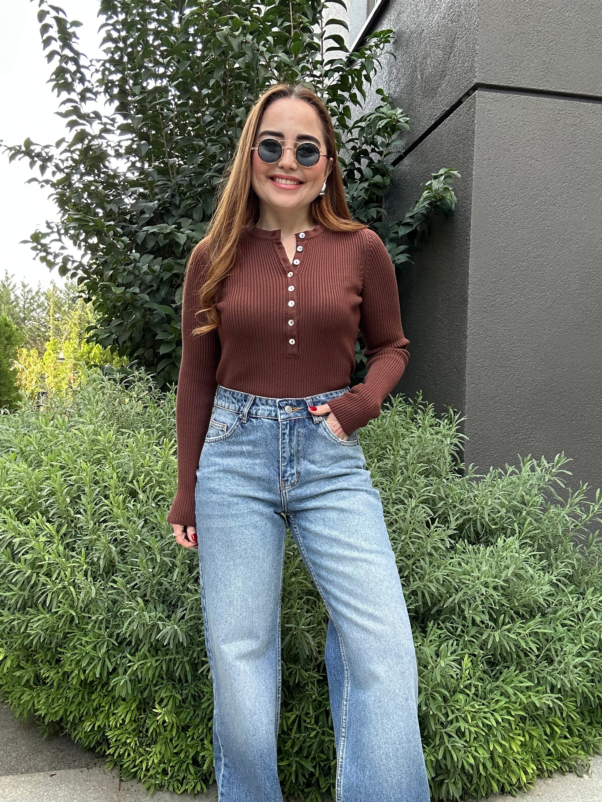Sedef düğmeli triko